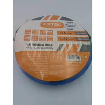 EXTOL-PREMIUM - PVC légtömlő gyorscsatlakozóval - 10méter - 6mm belső/12mm külső - 21 bar - 1/4" |