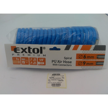 EXTOL-PREMIUM - PU légtömlő spirál gyorscsatlakozóval - 5méter - 9/6mm - 15 bar - 1/4" |