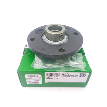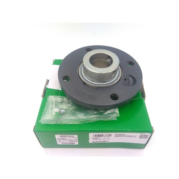 Y-csapágyegység - kör alakú öntöttvas csapágyház - központosító perem - hernyócsavaros t.rögzítés |